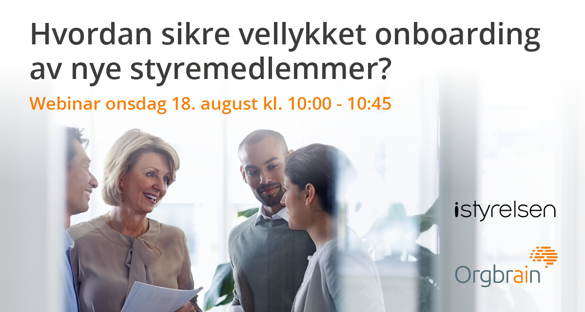 Webinaret vil belyse hva virksomheten med sin styreleder – og det nyvalgte styremedlemmet selv – kan gjøre for at onboardingen skal bli mest mulig vellykket.